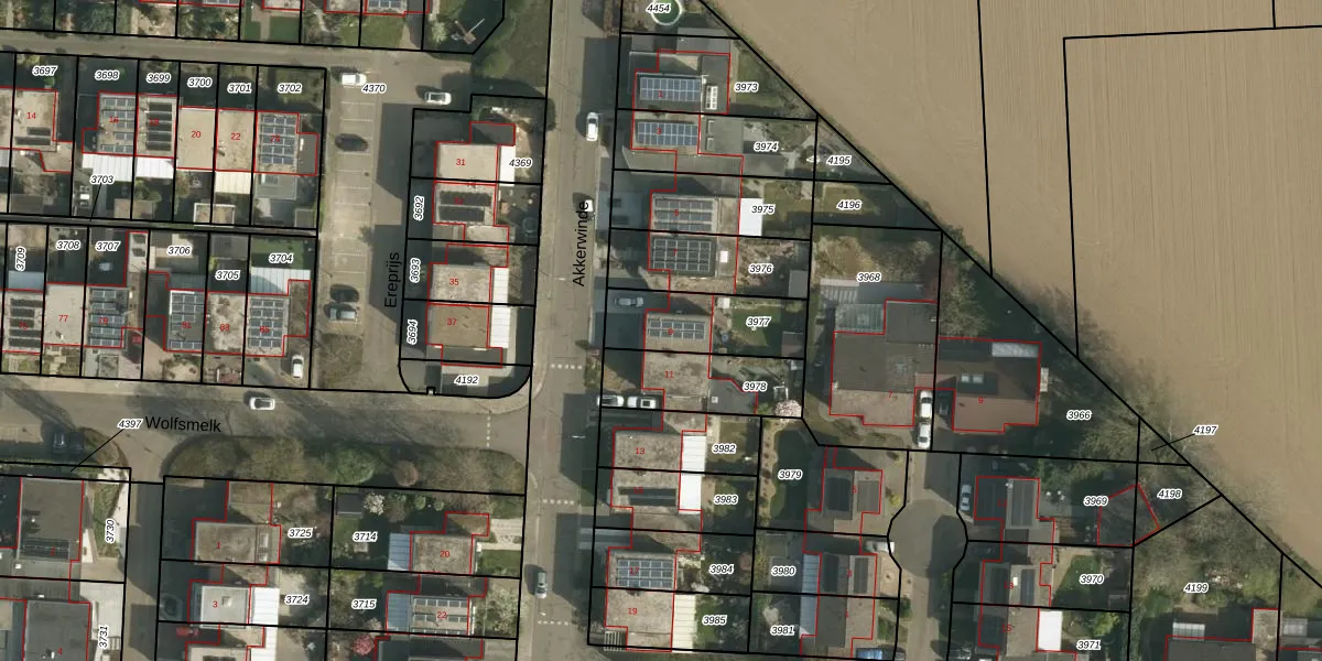 Akkerwinde 9 is gelegen op kadastraal perceel UBH00B3977. Deze kadastrale aanduiding is uniek en wordt gebruikt door het Kadaster om eigendomsrechten en andere zakelijke rechten vast te leggen. Het perceel maakt onderdeel uit van de kadastrale gemeente Ubach over Worms.