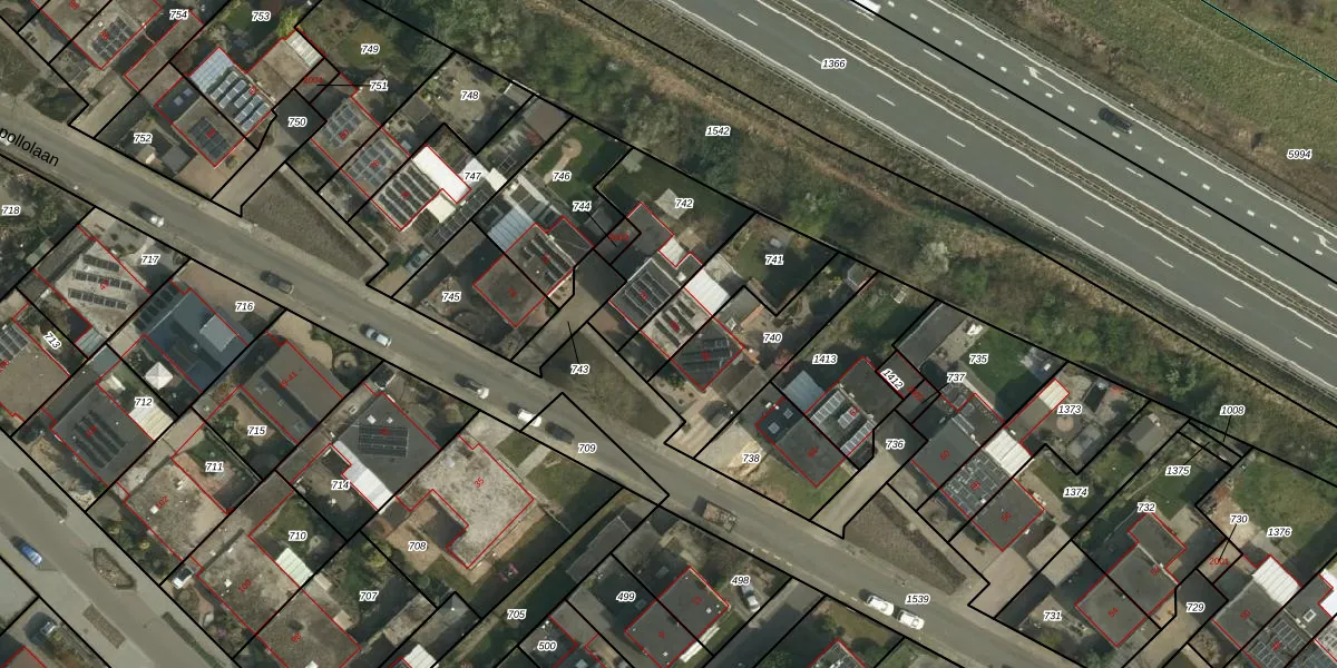 Gebruik de zoekbalk of klik op een perceel voor informatie over de adressen binnen dit perceel.
