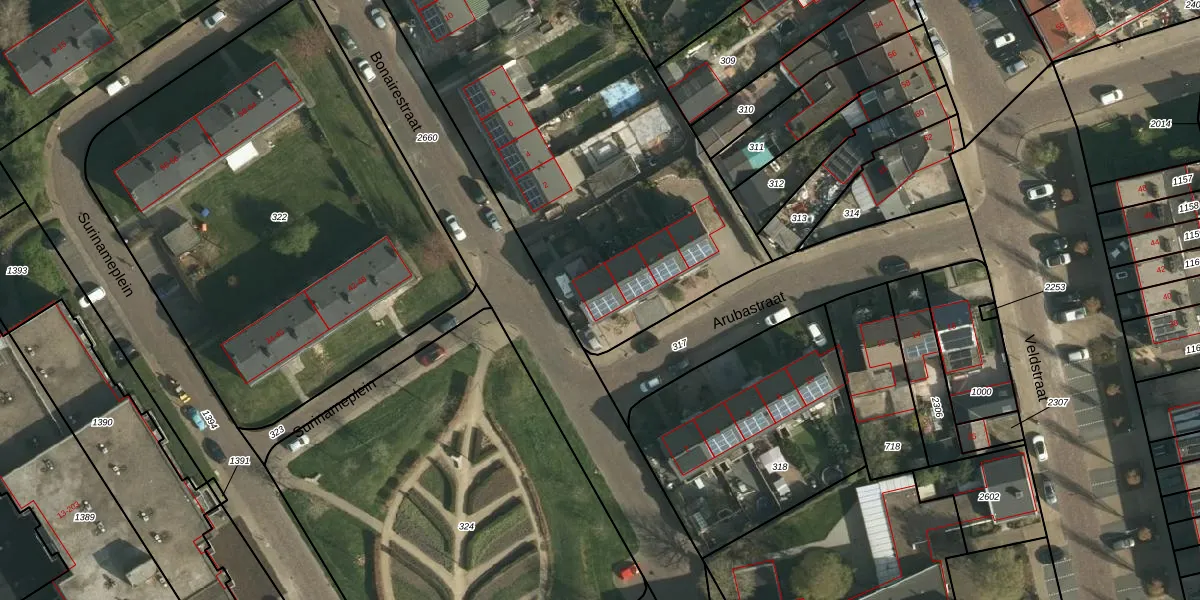 Arubastraat 1 is gelegen op kadastraal perceel SBG01E316. Deze kadastrale aanduiding is uniek en wordt gebruikt door het Kadaster om eigendomsrechten en andere zakelijke rechten vast te leggen. Het perceel maakt onderdeel uit van de kadastrale gemeente Schaesberg.
