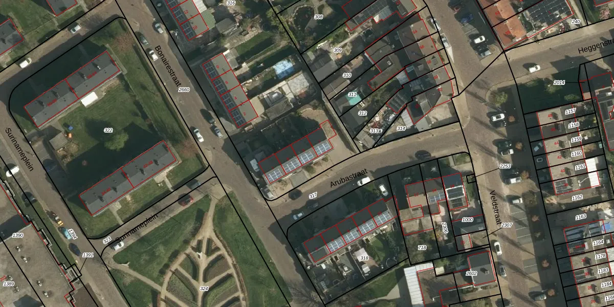 Arubastraat 5 is gelegen op kadastraal perceel SBG01E316. Deze kadastrale aanduiding is uniek en wordt gebruikt door het Kadaster om eigendomsrechten en andere zakelijke rechten vast te leggen. Het perceel maakt onderdeel uit van de kadastrale gemeente Schaesberg.