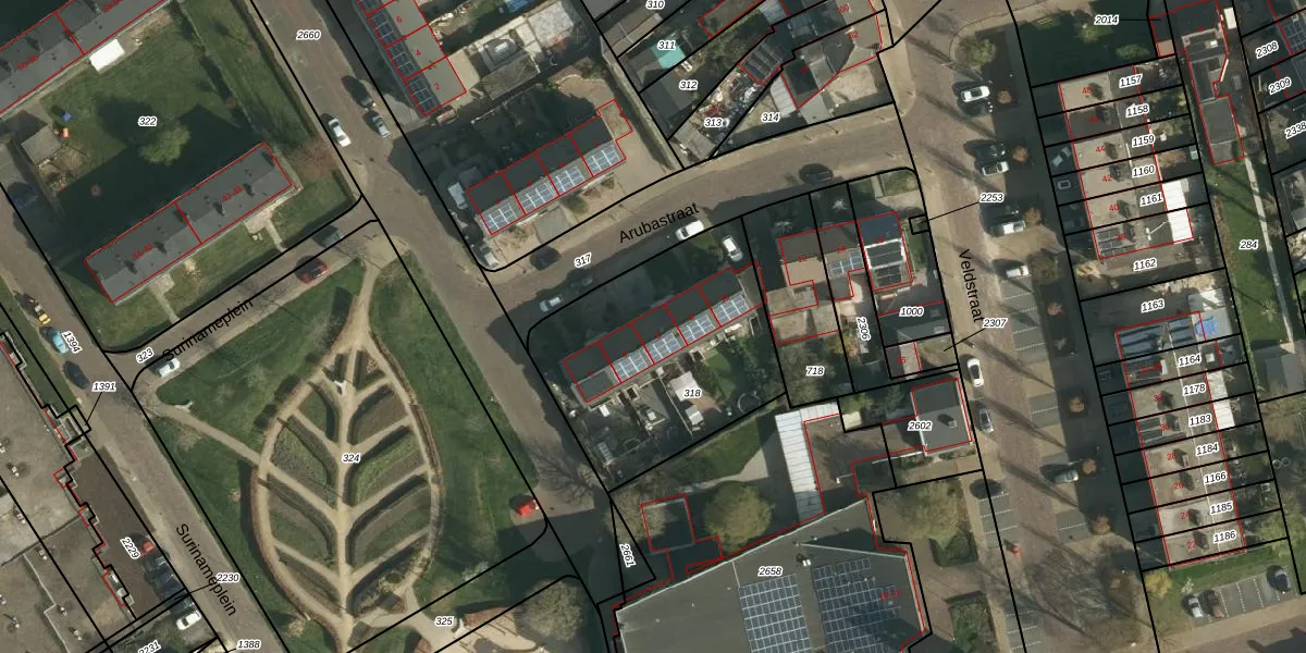 Arubastraat 6 is gelegen op kadastraal perceel SBG01E318. Deze kadastrale aanduiding is uniek en wordt gebruikt door het Kadaster om eigendomsrechten en andere zakelijke rechten vast te leggen. Het perceel maakt onderdeel uit van de kadastrale gemeente Schaesberg.