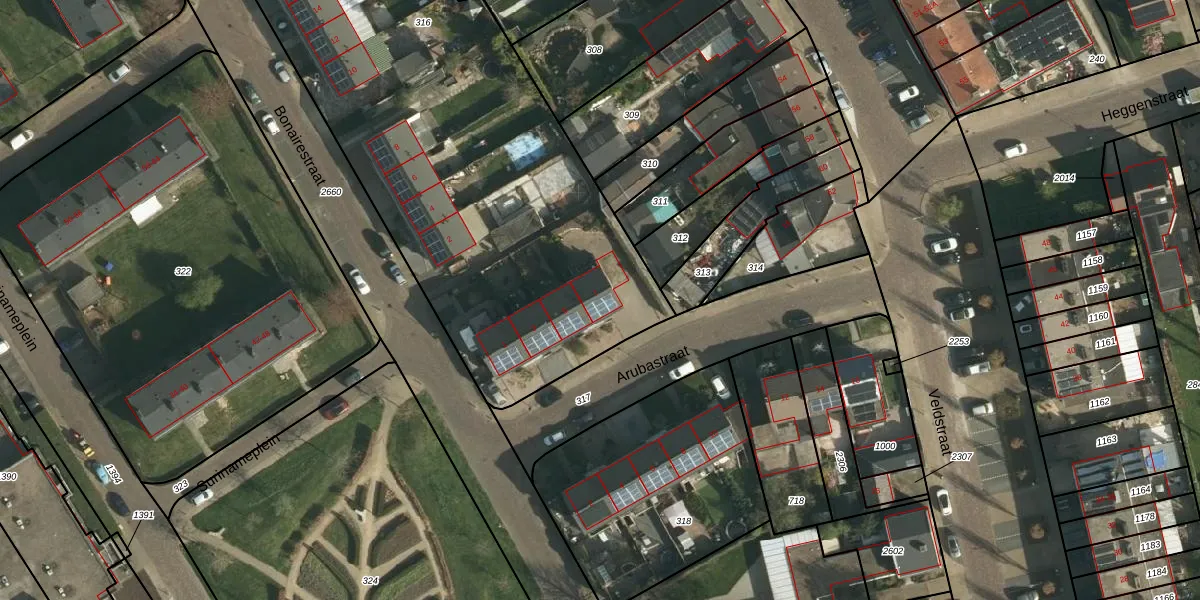Arubastraat 7 is gelegen op kadastraal perceel SBG01E316. Deze kadastrale aanduiding is uniek en wordt gebruikt door het Kadaster om eigendomsrechten en andere zakelijke rechten vast te leggen. Het perceel maakt onderdeel uit van de kadastrale gemeente Schaesberg.