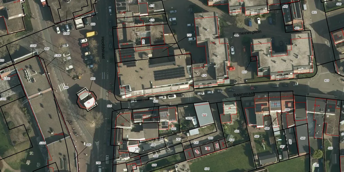 Baanstraat 1 is gelegen op kadastraal perceel LGF00D474. Deze kadastrale aanduiding is uniek en wordt gebruikt door het Kadaster om eigendomsrechten en andere zakelijke rechten vast te leggen. Het perceel maakt onderdeel uit van de kadastrale gemeente Landgraaf.