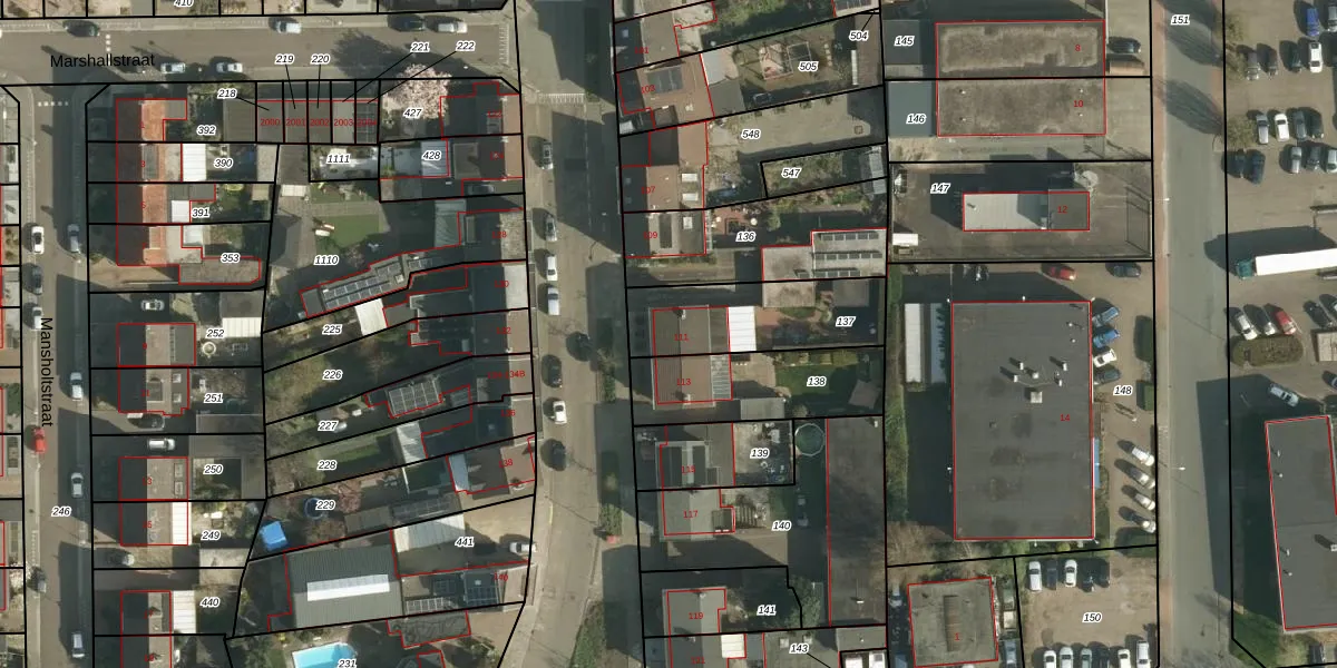 Gebruik de zoekbalk of klik op een perceel voor informatie over de adressen binnen dit perceel.
