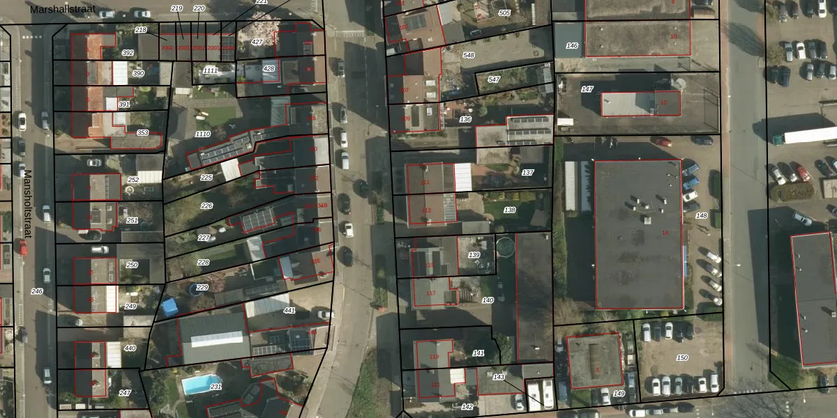 Gebruik de zoekbalk of klik op een perceel voor informatie over de adressen binnen dit perceel.