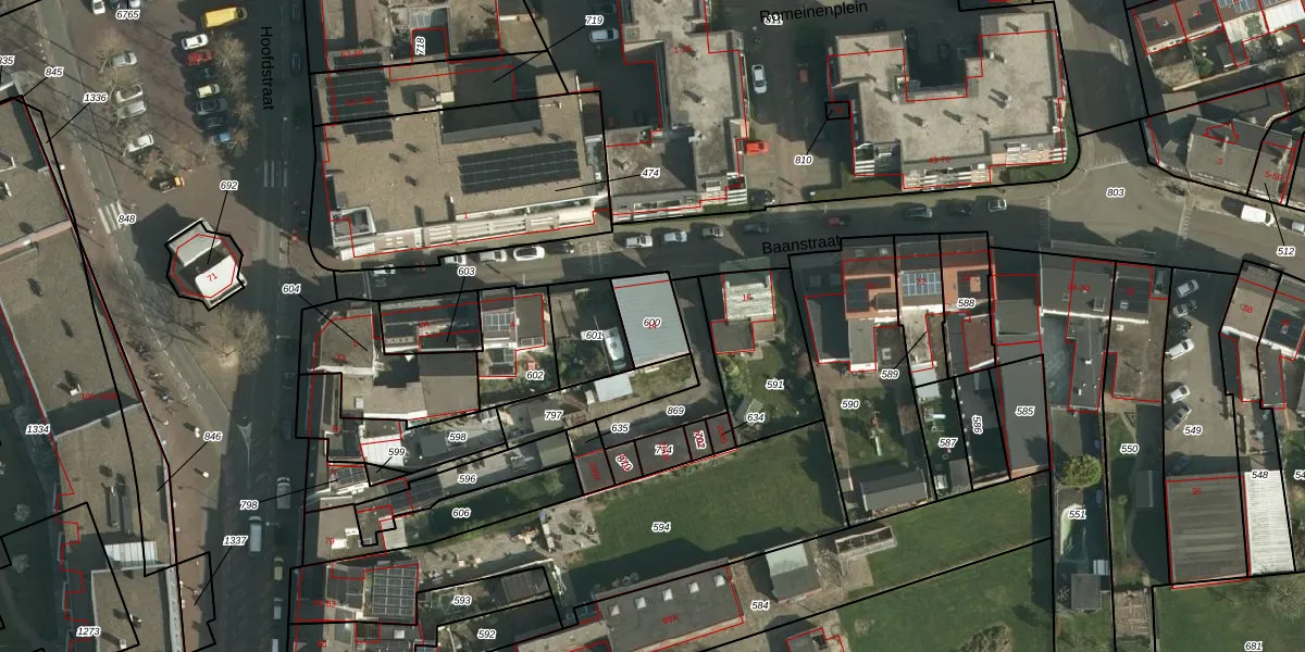 Baanstraat 14 is gelegen op kadastraal perceel LGF00D600. Deze kadastrale aanduiding is uniek en wordt gebruikt door het Kadaster om eigendomsrechten en andere zakelijke rechten vast te leggen. Het perceel maakt onderdeel uit van de kadastrale gemeente Landgraaf.