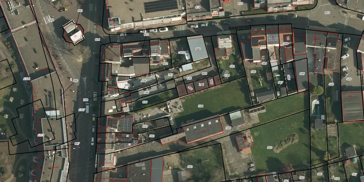 Het perceel waarop Baanstraat 2004 staat heeft een oppervlakte van 51 m². Dit is een klein perceel. De perceeloppervlakte wordt geregistreerd door het Kadaster. Gedetailleerde informatie over de maten van dit perceel kunt u vinden in het rapport Kadastrale kaart met maatvoering van Baanstraat 2004.