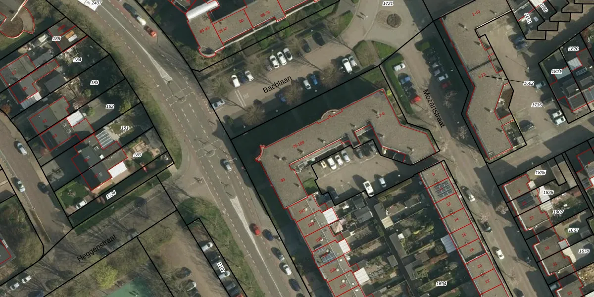 Het perceel waarop Bachlaan 103 staat heeft een oppervlakte van 7003 m². Dit is een zeer groot perceel. De perceeloppervlakte wordt geregistreerd door het Kadaster. Gedetailleerde informatie over de maten van dit perceel kunt u vinden in het rapport Kadastrale kaart met maatvoering van Bachlaan 103.