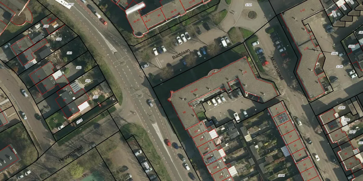 Het perceel waarop Bachlaan 85 staat heeft een oppervlakte van 7003 m². Dit is een zeer groot perceel. De perceeloppervlakte wordt geregistreerd door het Kadaster. Gedetailleerde informatie over de maten van dit perceel kunt u vinden in het rapport Kadastrale kaart met maatvoering van Bachlaan 85.