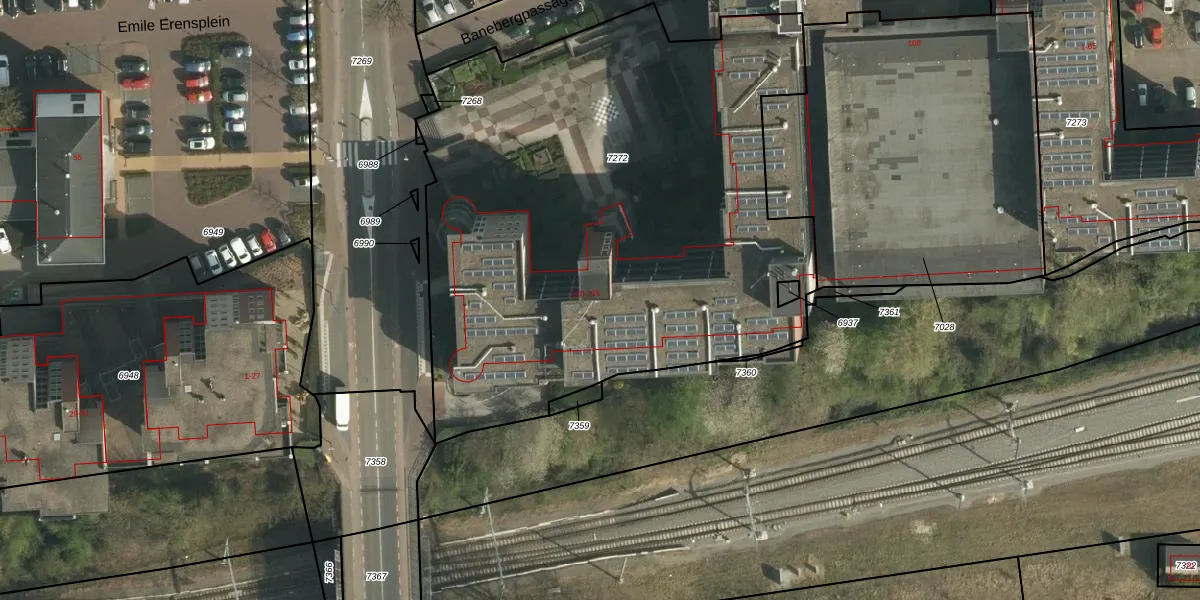 Het perceel waarop Banebergpassage 166 staat heeft een oppervlakte van 3495 m². Dit is een zeer groot perceel. De perceeloppervlakte wordt geregistreerd door het Kadaster. Gedetailleerde informatie over de maten van dit perceel kunt u vinden in het rapport Kadastrale kaart met maatvoering van Banebergpassage 166.