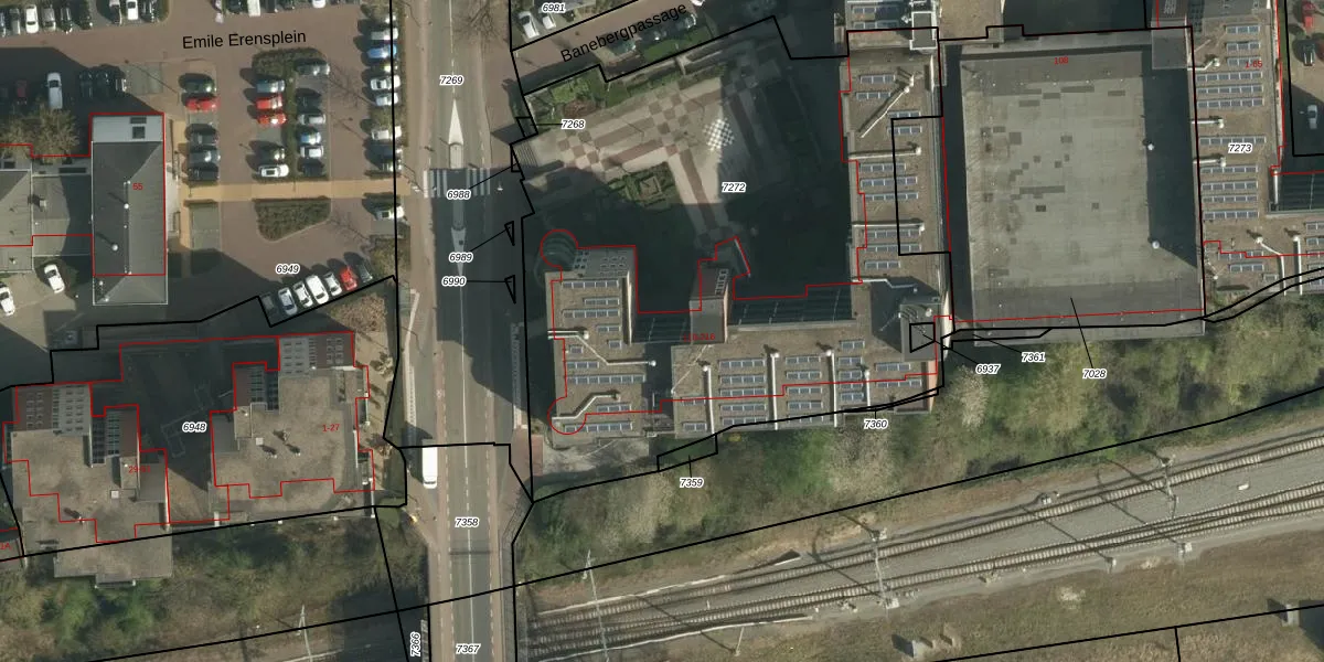 Het perceel waarop Banebergpassage 184 staat heeft een oppervlakte van 3495 m². Dit is een zeer groot perceel. De perceeloppervlakte wordt geregistreerd door het Kadaster. Gedetailleerde informatie over de maten van dit perceel kunt u vinden in het rapport Kadastrale kaart met maatvoering van Banebergpassage 184.