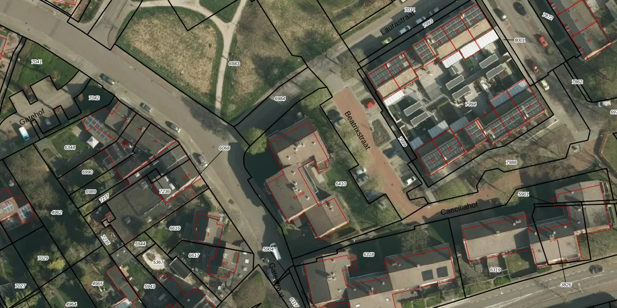 Het perceel waarop Beatrixstraat 109 staat heeft een oppervlakte van 1430 m². Dit is een zeer groot perceel. De perceeloppervlakte wordt geregistreerd door het Kadaster. Gedetailleerde informatie over de maten van dit perceel kunt u vinden in het rapport Kadastrale kaart met maatvoering van Beatrixstraat 109.