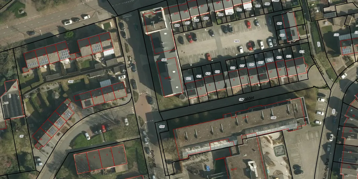 Het perceel waarop Belvauer 66 staat heeft een oppervlakte van 997 m². Dit is een groot perceel. De perceeloppervlakte wordt geregistreerd door het Kadaster. Gedetailleerde informatie over de maten van dit perceel kunt u vinden in het rapport Kadastrale kaart met maatvoering van Belvauer 66.
