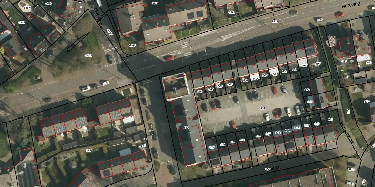 Het perceel waarop het adres ligt is NWH01-D-580. De afkorting 'NWH01' staat voor kadastrale gemeente Nieuwenhagen. Het perceel is kleiner dan gemiddeld in Nieuwenhagen. Het perceel is 997 m² groot, terwijl het gemiddelde ligt op 1362,29 m². Het kleinste perceel in de kadastrale gemeente is 1 m² groot. De grootste perceeloppervlakte is 17,6 ha. Er zijn 16 adressen aanwezig op het perceel. De laatste wijziging in het de Basisregistratie Kadaster (BRK) was op 22-04-2008.