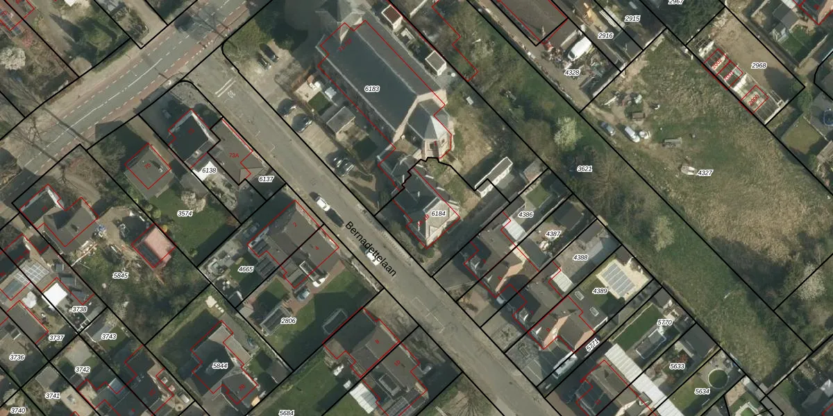 Het perceel waarop Bernadettelaan 1-A staat heeft een oppervlakte van 492 m². Dit is een groot perceel. De perceeloppervlakte wordt geregistreerd door het Kadaster. Gedetailleerde informatie over de maten van dit perceel kunt u vinden in het rapport Kadastrale kaart met maatvoering van Bernadettelaan 1-A.