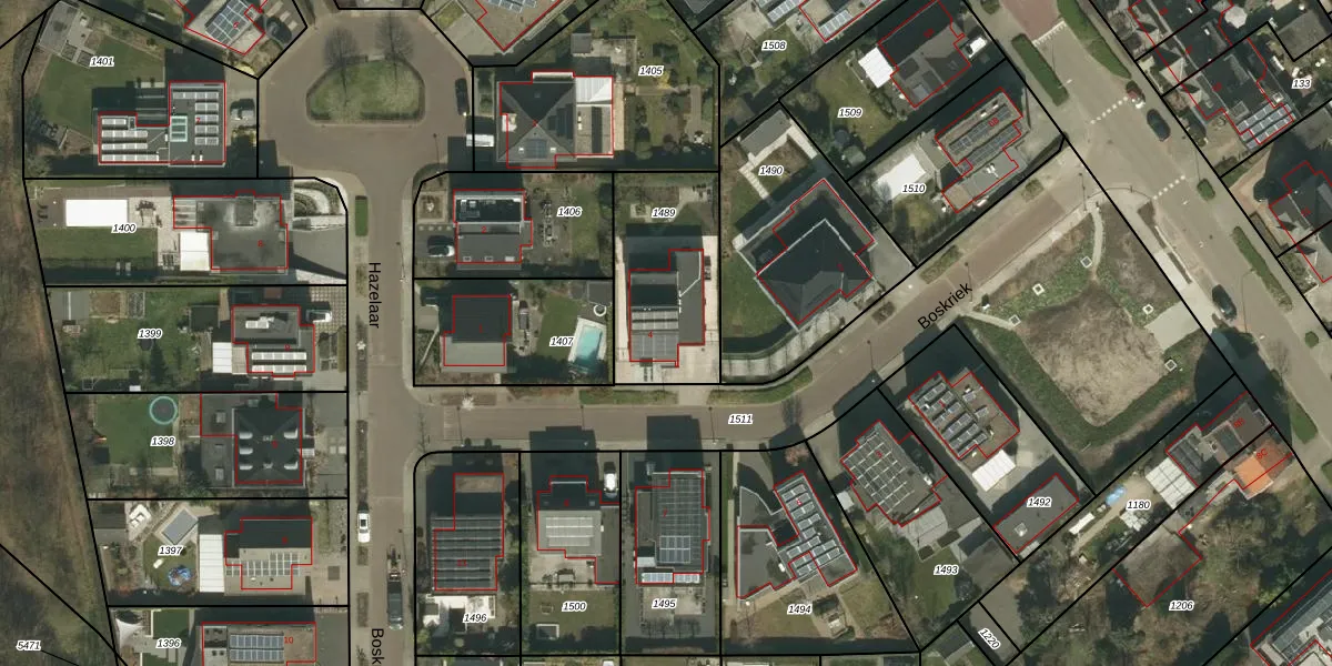 Het perceel waarop Boskriek 4 staat heeft een oppervlakte van 510 m². Dit is een groot perceel. De perceeloppervlakte wordt geregistreerd door het Kadaster. Gedetailleerde informatie over de maten van dit perceel kunt u vinden in het rapport Kadastrale kaart met maatvoering van Boskriek 4.