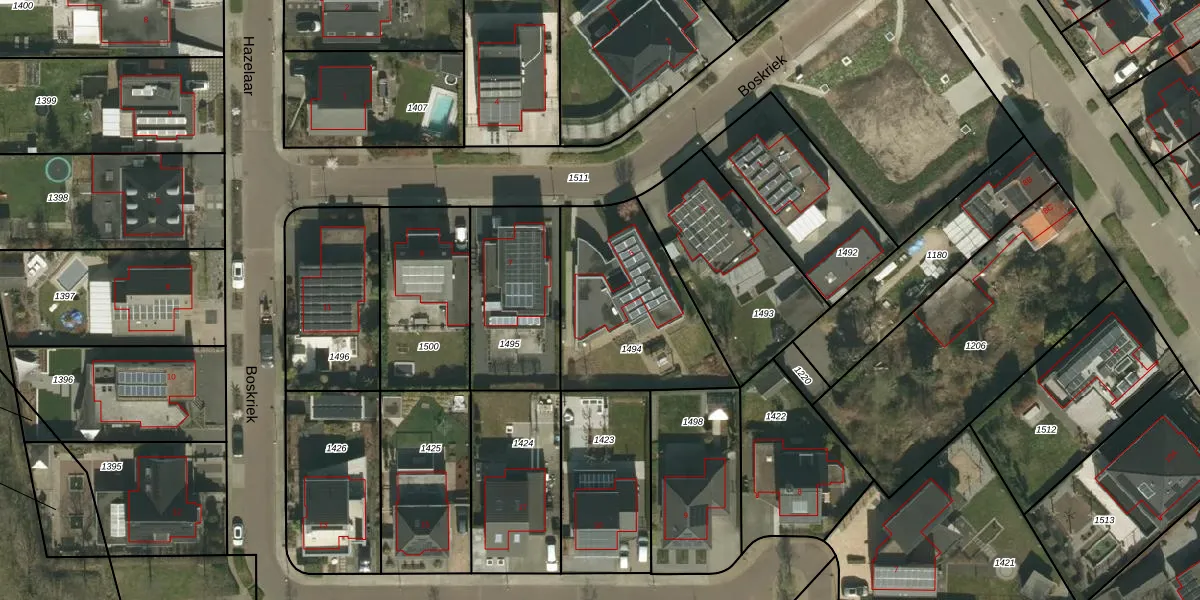 Boskriek 5 is gelegen op kadastraal perceel LGF00B1494. Deze kadastrale aanduiding is uniek en wordt gebruikt door het Kadaster om eigendomsrechten en andere zakelijke rechten vast te leggen. Het perceel maakt onderdeel uit van de kadastrale gemeente Landgraaf.