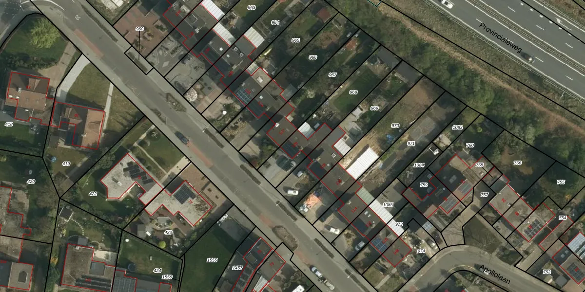 Gebruik de zoekbalk of klik op een perceel voor informatie over de adressen binnen dit perceel.