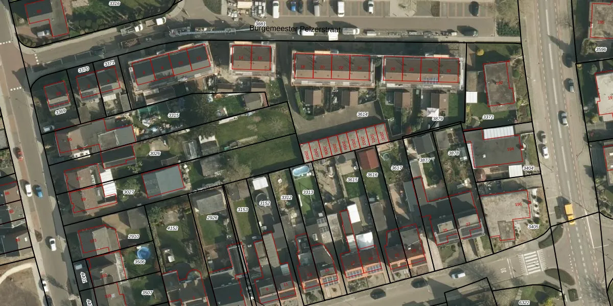 Het perceel waarop Burgemeester Pelzerstraat 2008 staat heeft een oppervlakte van 2830 m². Dit is een zeer groot perceel. De perceeloppervlakte wordt geregistreerd door het Kadaster. Gedetailleerde informatie over de maten van dit perceel kunt u vinden in het rapport Kadastrale kaart met maatvoering van Burgemeester Pelzerstraat 2008.