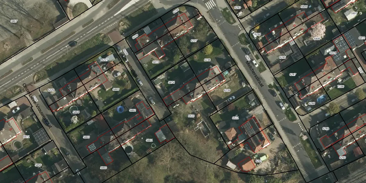 Carmelstraat 5 is gelegen op kadastraal perceel SBG01B5874. Deze kadastrale aanduiding is uniek en wordt gebruikt door het Kadaster om eigendomsrechten en andere zakelijke rechten vast te leggen. Het perceel maakt onderdeel uit van de kadastrale gemeente Schaesberg.