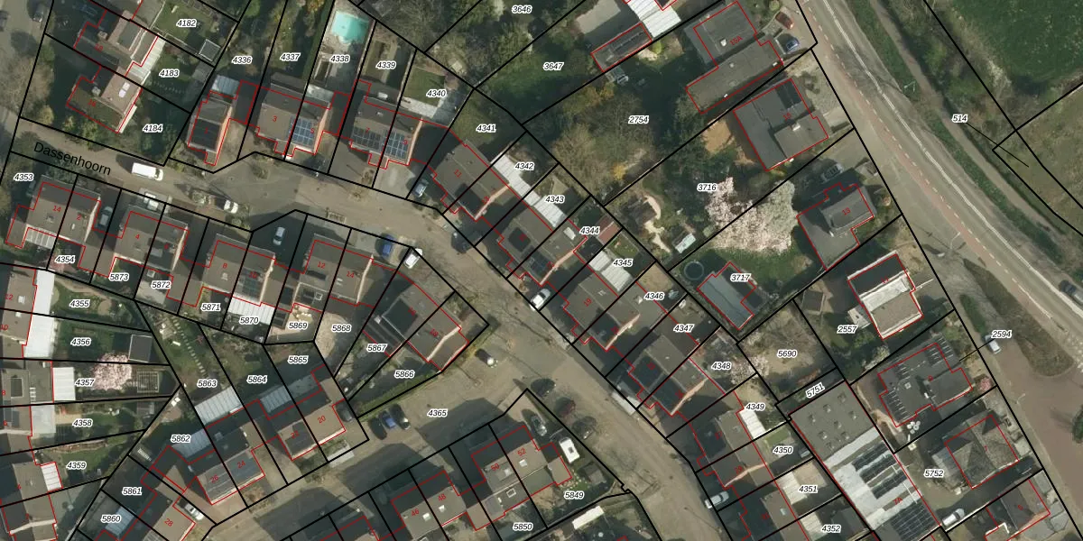 Het perceel waarop Dassenhoorn 17 staat heeft een oppervlakte van 184 m². Dit is een middelgroot perceel. De perceeloppervlakte wordt geregistreerd door het Kadaster. Gedetailleerde informatie over de maten van dit perceel kunt u vinden in het rapport Kadastrale kaart met maatvoering van Dassenhoorn 17.
