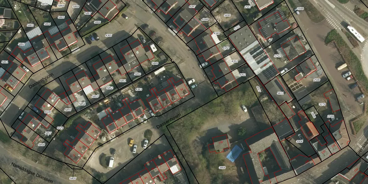 Het perceel waarop Dassenhoorn 54 staat heeft een oppervlakte van 1812 m². Dit is een zeer groot perceel. De perceeloppervlakte wordt geregistreerd door het Kadaster. Gedetailleerde informatie over de maten van dit perceel kunt u vinden in het rapport Kadastrale kaart met maatvoering van Dassenhoorn 54.