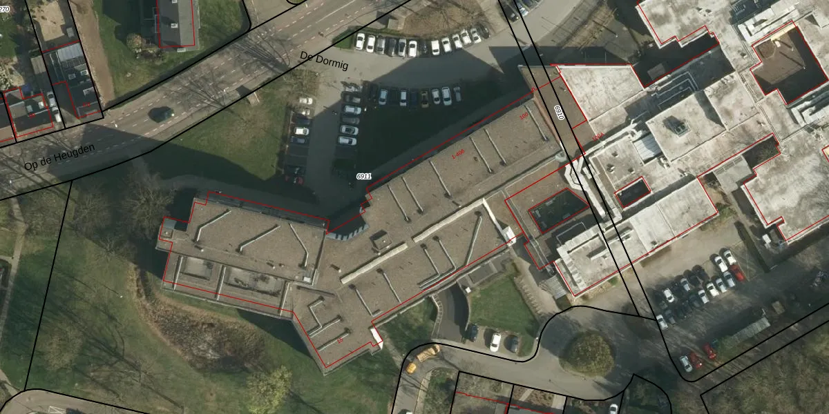 Het perceel waarop De Dormig 115 staat heeft een oppervlakte van 1,0 ha. Dit is een zeer groot perceel. De perceeloppervlakte wordt geregistreerd door het Kadaster. Gedetailleerde informatie over de maten van dit perceel kunt u vinden in het rapport Kadastrale kaart met maatvoering van De Dormig 115.