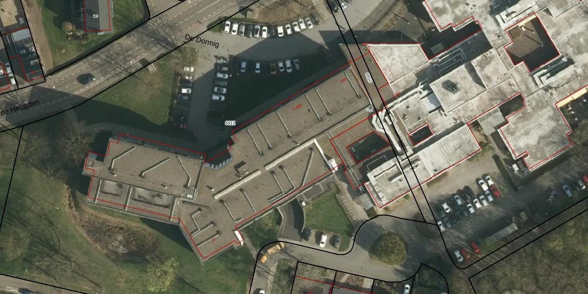 Het perceel waarop De Dormig 223 staat heeft een oppervlakte van 1,0 ha. Dit is een zeer groot perceel. De perceeloppervlakte wordt geregistreerd door het Kadaster. Gedetailleerde informatie over de maten van dit perceel kunt u vinden in het rapport Kadastrale kaart met maatvoering van De Dormig 223.