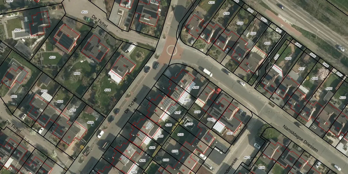 Het perceel waarop De Tichel 54 staat heeft een oppervlakte van 205 m². Dit is een middelgroot perceel. De perceeloppervlakte wordt geregistreerd door het Kadaster. Gedetailleerde informatie over de maten van dit perceel kunt u vinden in het rapport Kadastrale kaart met maatvoering van De Tichel 54.