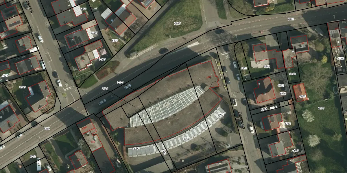 Het perceel waarop Delleweg 16 staat heeft een oppervlakte van 1518 m². Dit is een zeer groot perceel. De perceeloppervlakte wordt geregistreerd door het Kadaster. Gedetailleerde informatie over de maten van dit perceel kunt u vinden in het rapport Kadastrale kaart met maatvoering van Delleweg 16.