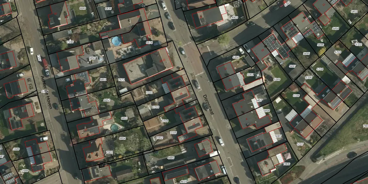Gebruik de zoekbalk of klik op een perceel voor informatie over de adressen binnen dit perceel.