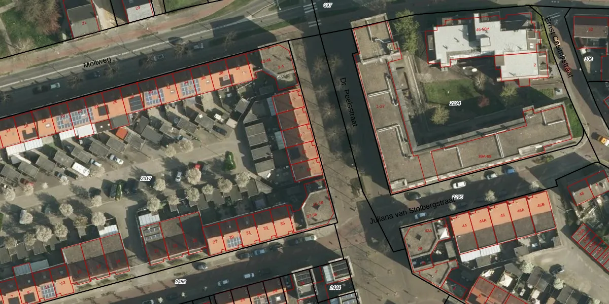 Dr. Poelsstraat 12 is gelegen op kadastraal perceel SBG01E2317. Deze kadastrale aanduiding is uniek en wordt gebruikt door het Kadaster om eigendomsrechten en andere zakelijke rechten vast te leggen. Het perceel maakt onderdeel uit van de kadastrale gemeente Schaesberg.