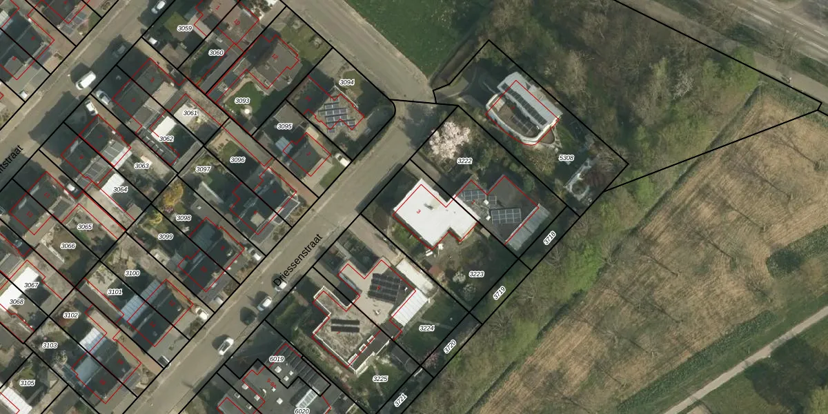 Driessenstraat 3 is gelegen op kadastraal perceel UBH00A3223. Deze kadastrale aanduiding is uniek en wordt gebruikt door het Kadaster om eigendomsrechten en andere zakelijke rechten vast te leggen. Het perceel maakt onderdeel uit van de kadastrale gemeente Ubach over Worms.