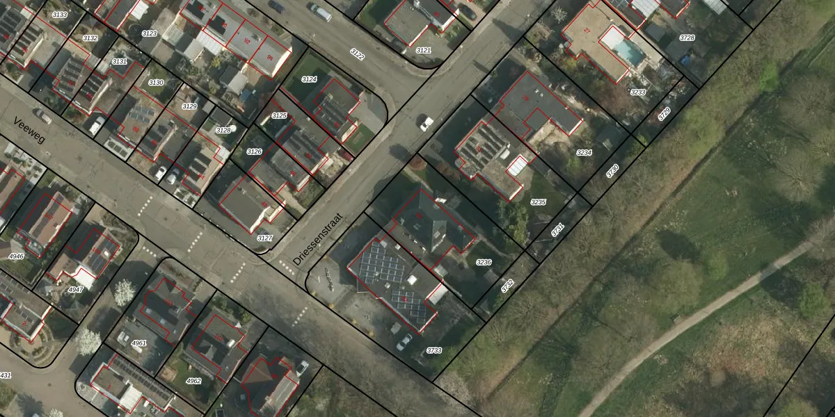 Driessenstraat 33 is gelegen op kadastraal perceel UBH00A3236. Deze kadastrale aanduiding is uniek en wordt gebruikt door het Kadaster om eigendomsrechten en andere zakelijke rechten vast te leggen. Het perceel maakt onderdeel uit van de kadastrale gemeente Ubach over Worms.