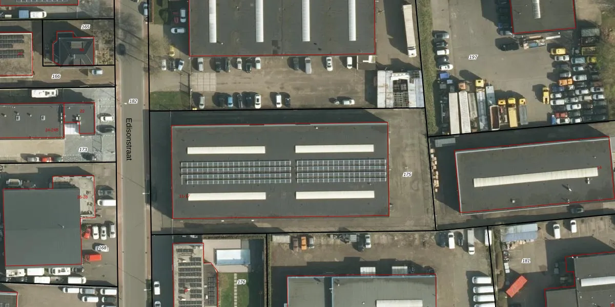 Edisonstraat 13 is gelegen op kadastraal perceel LGF00C175. Deze kadastrale aanduiding is uniek en wordt gebruikt door het Kadaster om eigendomsrechten en andere zakelijke rechten vast te leggen. Het perceel maakt onderdeel uit van de kadastrale gemeente Landgraaf.
