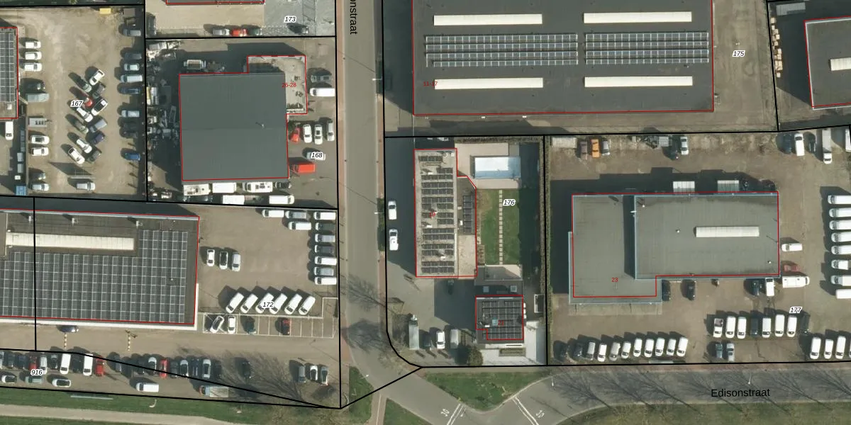 Edisonstraat 19 is gelegen op kadastraal perceel LGF00C176. Deze kadastrale aanduiding is uniek en wordt gebruikt door het Kadaster om eigendomsrechten en andere zakelijke rechten vast te leggen. Het perceel maakt onderdeel uit van de kadastrale gemeente Landgraaf.