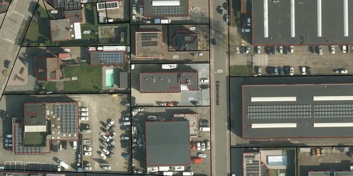 Het perceel waarop Edisonstraat 24 staat heeft een oppervlakte van 1095 m². Dit is een zeer groot perceel. De perceeloppervlakte wordt geregistreerd door het Kadaster. Gedetailleerde informatie over de maten van dit perceel kunt u vinden in het rapport Kadastrale kaart met maatvoering van Edisonstraat 24.