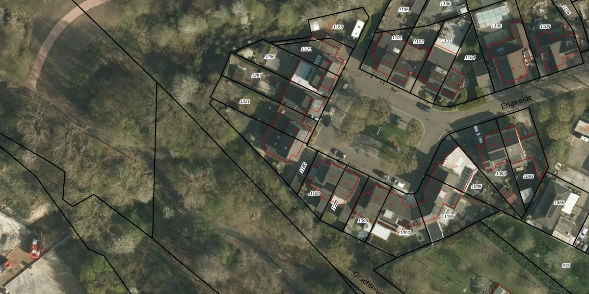 Het perceel waarop Engweide 26 staat heeft een oppervlakte van 374 m². Dit is een groot perceel. De perceeloppervlakte wordt geregistreerd door het Kadaster. Gedetailleerde informatie over de maten van dit perceel kunt u vinden in het rapport Kadastrale kaart met maatvoering van Engweide 26.