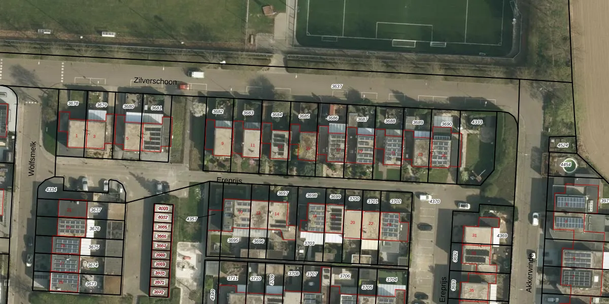 Gebruik de zoekbalk of klik op een perceel voor informatie over de adressen binnen dit perceel.
