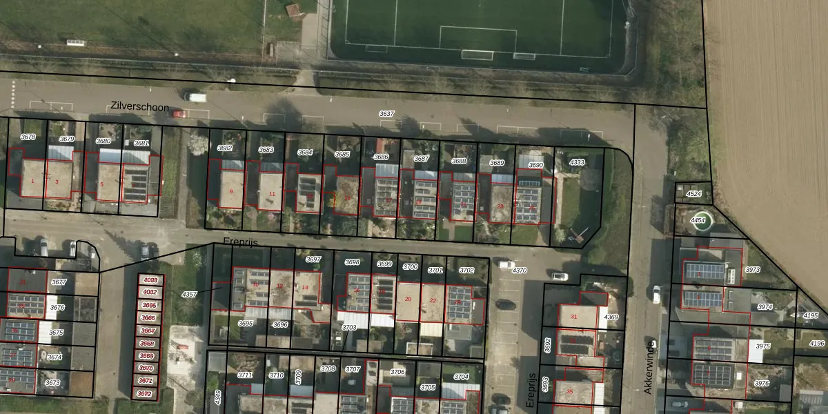 Het perceel waarop Ereprijs 19 staat heeft een oppervlakte van 231 m². Dit is een middelgroot perceel. De perceeloppervlakte wordt geregistreerd door het Kadaster. Gedetailleerde informatie over de maten van dit perceel kunt u vinden in het rapport Kadastrale kaart met maatvoering van Ereprijs 19.