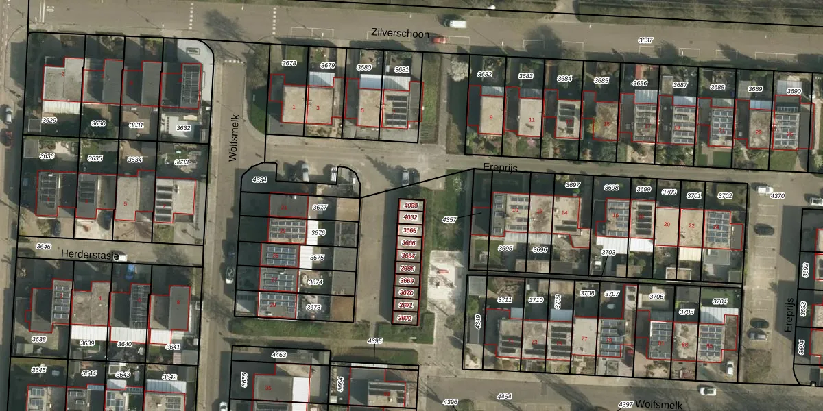 Het perceel waarop Ereprijs 2008 staat heeft een oppervlakte van 20 m². Dit is een klein perceel. De perceeloppervlakte wordt geregistreerd door het Kadaster. Gedetailleerde informatie over de maten van dit perceel kunt u vinden in het rapport Kadastrale kaart met maatvoering van Ereprijs 2008.