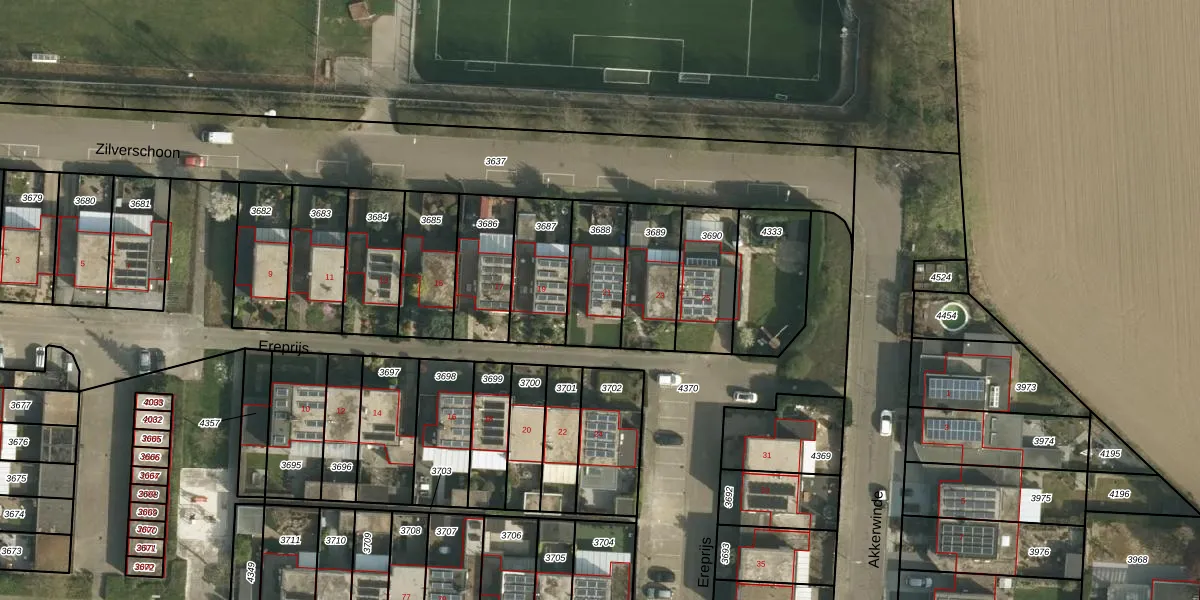 Gebruik de zoekbalk of klik op een perceel voor informatie over de adressen binnen dit perceel.