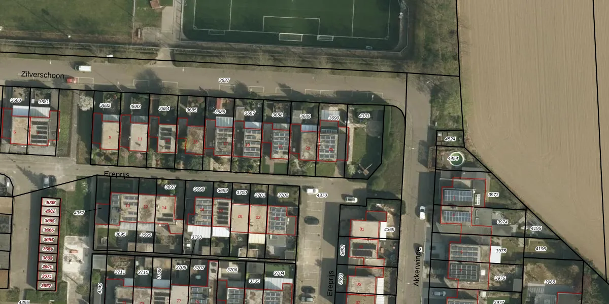 Het perceel waarop Ereprijs 23 staat heeft een oppervlakte van 228 m². Dit is een middelgroot perceel. De perceeloppervlakte wordt geregistreerd door het Kadaster. Gedetailleerde informatie over de maten van dit perceel kunt u vinden in het rapport Kadastrale kaart met maatvoering van Ereprijs 23.