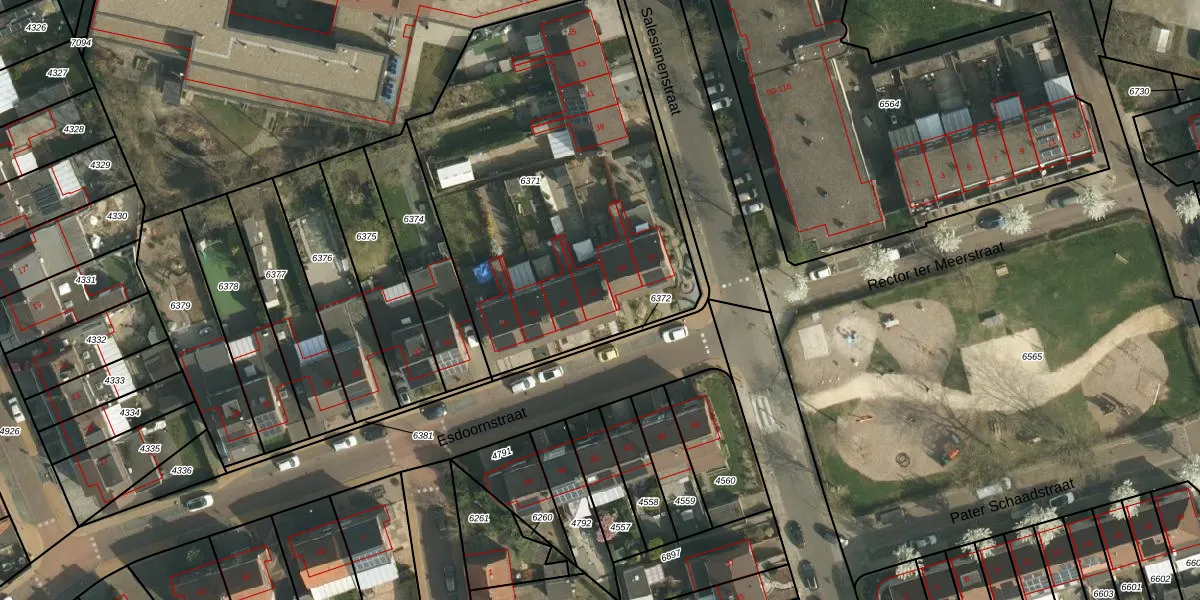 Het perceel waarop Esdoornstraat 47 staat heeft een oppervlakte van 2033 m². Dit is een zeer groot perceel. De perceeloppervlakte wordt geregistreerd door het Kadaster. Gedetailleerde informatie over de maten van dit perceel kunt u vinden in het rapport Kadastrale kaart met maatvoering van Esdoornstraat 47.