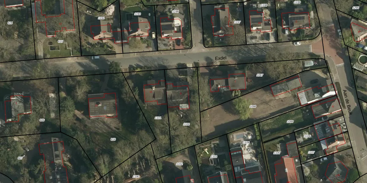 Het perceel waarop Exdel 9 staat heeft een oppervlakte van 790 m². Dit is een groot perceel. De perceeloppervlakte wordt geregistreerd door het Kadaster. Gedetailleerde informatie over de maten van dit perceel kunt u vinden in het rapport Kadastrale kaart met maatvoering van Exdel 9.