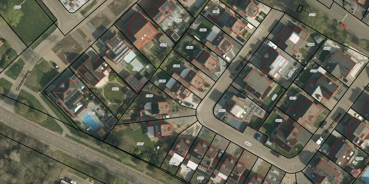 Het perceel waarop F.L. Wrightstraat 33 staat heeft een oppervlakte van 262 m². Dit is een middelgroot perceel. De perceeloppervlakte wordt geregistreerd door het Kadaster. Gedetailleerde informatie over de maten van dit perceel kunt u vinden in het rapport Kadastrale kaart met maatvoering van F.L. Wrightstraat 33.
