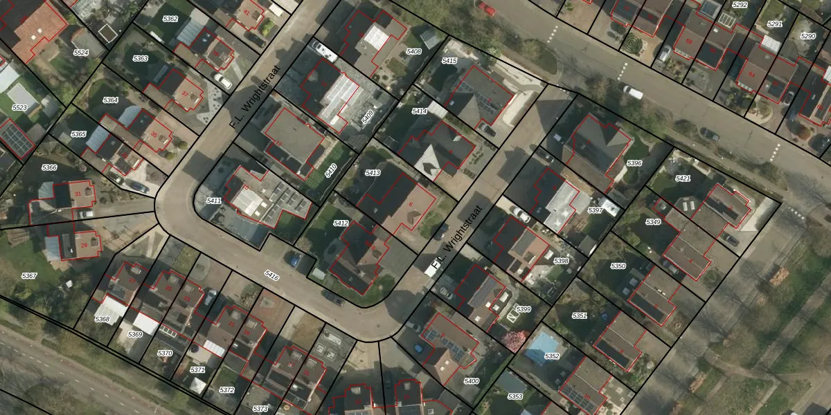 Het perceel waarop F.L. Wrightstraat 6 staat heeft een oppervlakte van 417 m². Dit is een groot perceel. De perceeloppervlakte wordt geregistreerd door het Kadaster. Gedetailleerde informatie over de maten van dit perceel kunt u vinden in het rapport Kadastrale kaart met maatvoering van F.L. Wrightstraat 6.