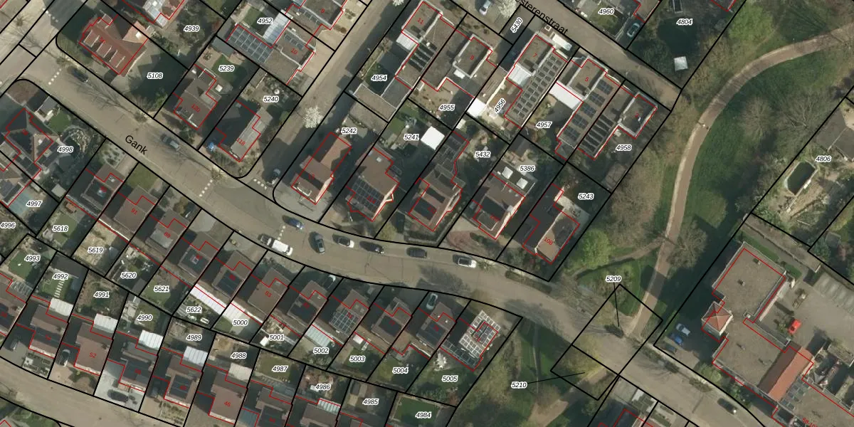 Het perceel waarop Gank 112 staat heeft een oppervlakte van 432 m². Dit is een groot perceel. De perceeloppervlakte wordt geregistreerd door het Kadaster. Gedetailleerde informatie over de maten van dit perceel kunt u vinden in het rapport Kadastrale kaart met maatvoering van Gank 112.