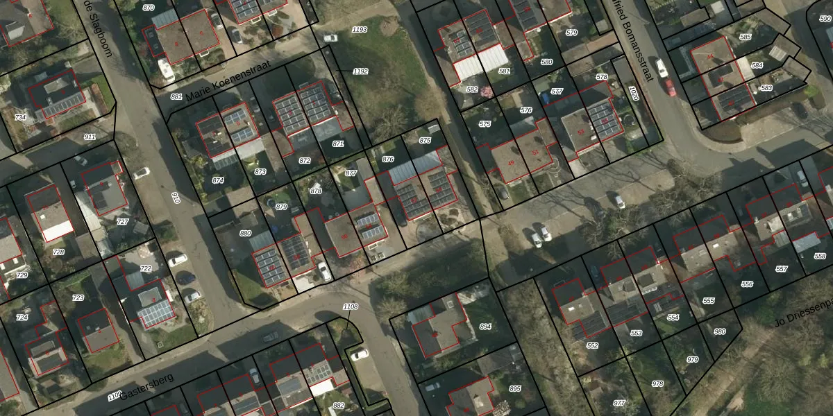 Gebruik de zoekbalk of klik op een perceel voor informatie over de adressen binnen dit perceel.