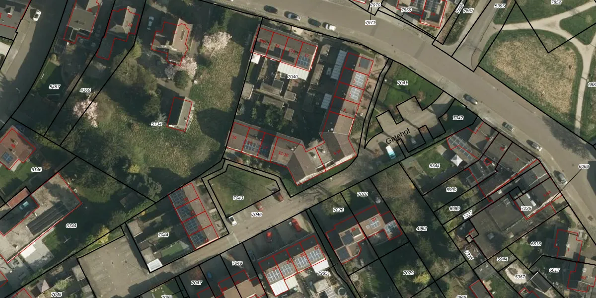 Gatehof 14 is gelegen op kadastraal perceel NWH01B7040. Deze kadastrale aanduiding is uniek en wordt gebruikt door het Kadaster om eigendomsrechten en andere zakelijke rechten vast te leggen. Het perceel maakt onderdeel uit van de kadastrale gemeente Nieuwenhagen.